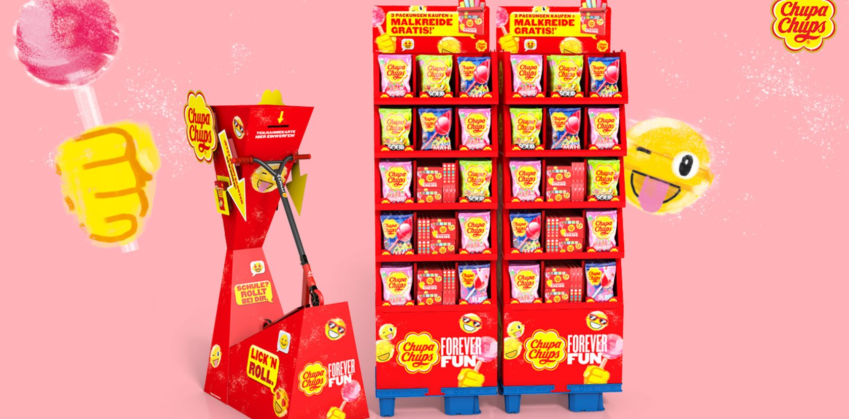 VerkaufsförderungChupa Chups Back to SchoolChupa Chups inszeniert alljährlich eine Aktivierung im Sommerzeitraum – Thema Back to School. Eine Aktivierung, die die Shopper:innen anzieht.